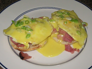 If your sauce breaks, dump it…don’t try to save it. If you sense it’s about to break, move it a little further away from the boiling water. Hollandaise sauce traditionally goes with Eggs Benedict (shown above) and over vegetables such as asparagus.